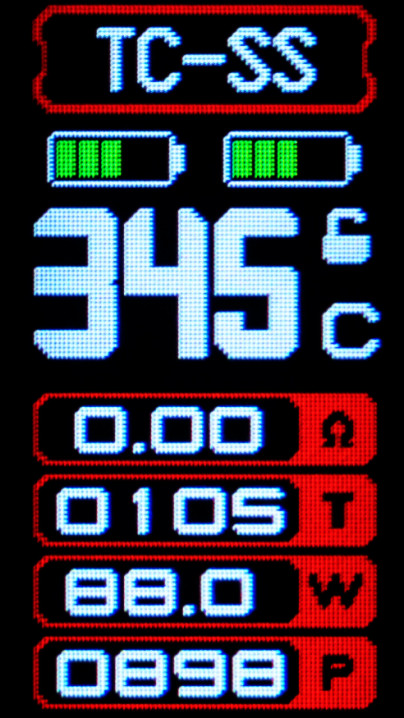TC, TCR – являет собой совершенно иной принцип работы. В отличие от предыдущих режимов, где на мощность пользователь влияет на прямую, здесь полностью контролируется именно температура пара. Из-за чего на дисплее мода отображаются показатели не в W, а в градусах Цельсия или Фаренгейтах.